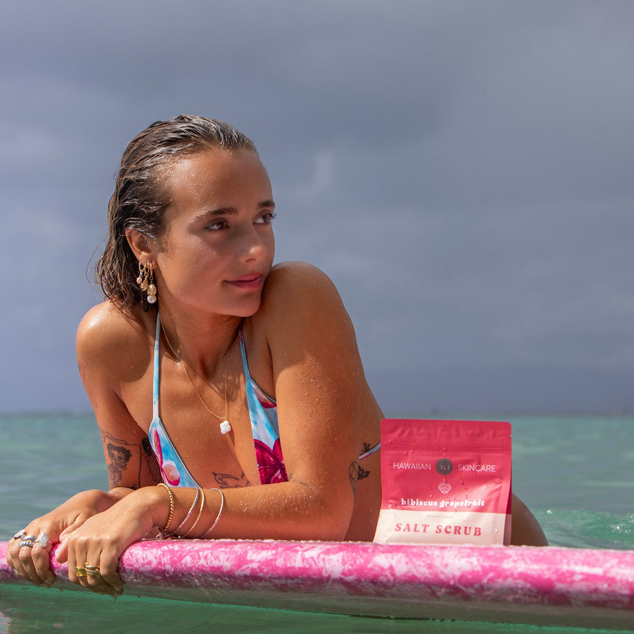 Our Hibiscus Grapefruit Salt Scrub is a bright, mood-boosting island moment wrapped in a luxe spa ritual. Fine Hawaiian sea salt gently buffs the skin to a silky finish, while hibiscus adds a subtle, natural glow. A burst of pink grapefruit lifts your senses like a breezy morning on the coast, and coconut oil leaves your skin soft, hydrated, and touchably smooth. It’s polished, radiant, vacation-level skin — no boarding pass required, just your shower and a little self-care energy.